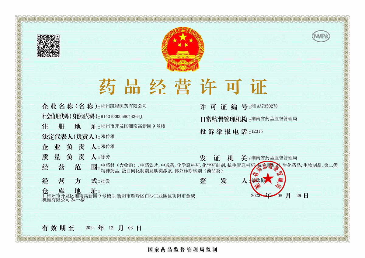 互聯網藥品信息服務資格證:(湘)-經營性-2023-0186號